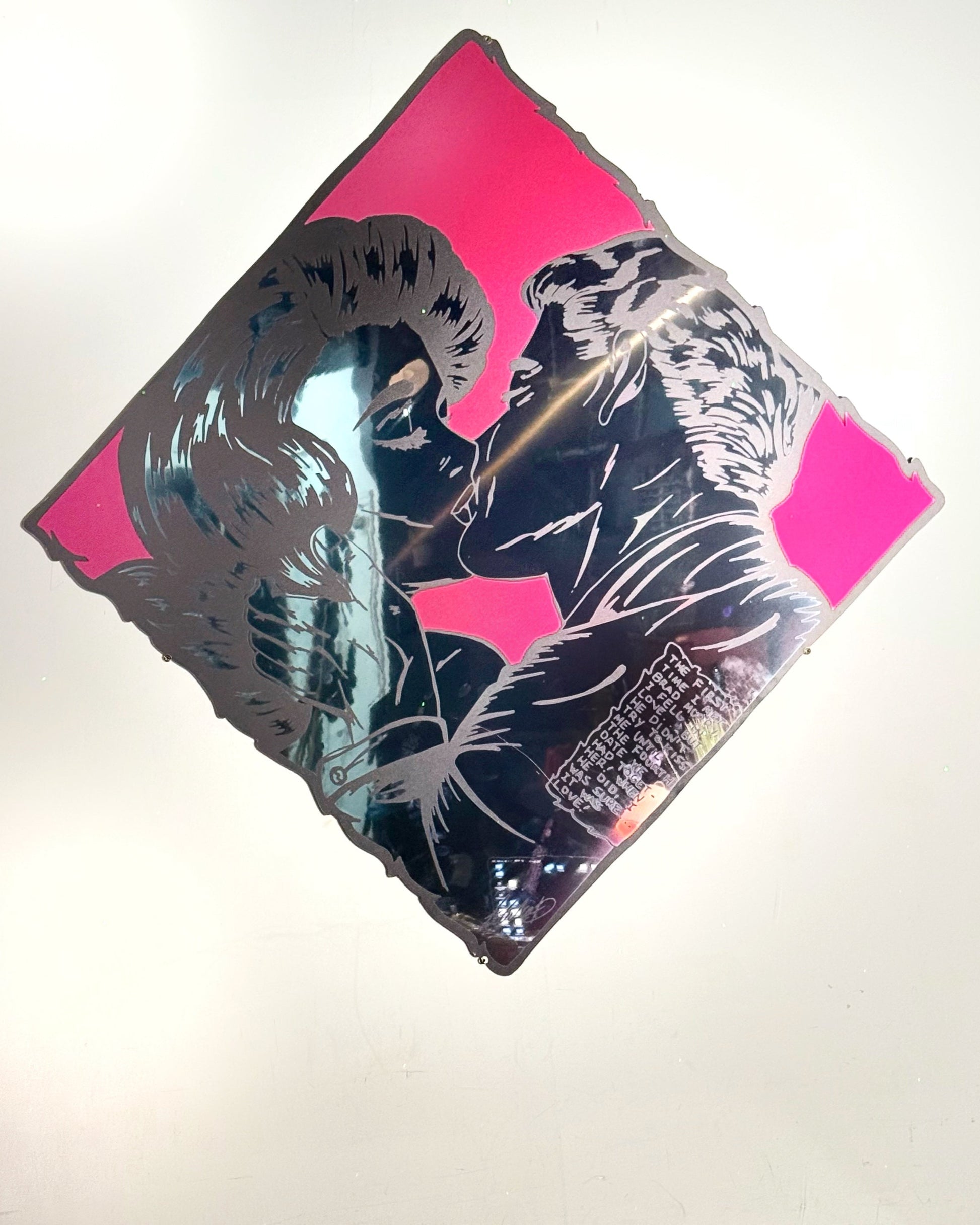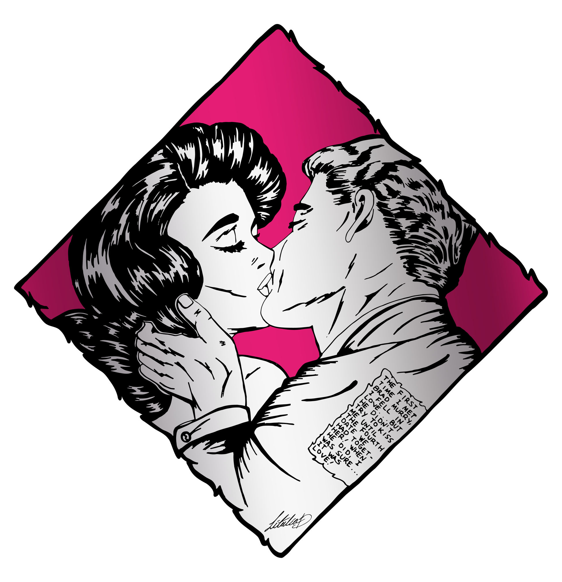 תחת השפעת חוברות קומיקס, פופ ארט, טיפוגרפיה וכוחו של קנה המידה, רישום דיו שחור זה על נייר עבר דיגיטציה ונשמר עם שינוי מינימלי תוך כדי טרנספורמציה באמצעות שינויים בקנה מידה, צבע וקומפוזיציה. על ידי שכבות ושילוב של עבודות מרובות ועל ידי ניסויים בשיטות וחומרים של הדפסה, ליטליה ד' יצרה יצירה זו המאזנת בין משמעות, חומריות והשפעה חזותית.